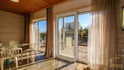 Возведен по монолитно-каркасной технологии, а второй и третий этаж - фасад из дерева.Установлены панорамные окна в пол которые обеспечивают внутреннее освещение и позволяют наслаждаться природным ландшафтом не выходя из дома. Потолки 2,8 метров позволят вам наслаждаться простором и воздухом.