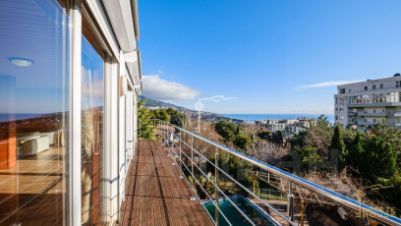 -элегантная спальня с выходом на террасу, которая ведет на эксплуатируемую кровлю, открывающую завораживающий панорамный вид на море и конечные горы,