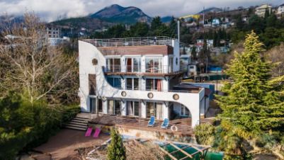 Продажа 3-этажной виллы с дизайнерским ремонтом и панорамным остеклением в пол на участке 10 соток с бассейном и потрясающим видом на море, горы и Ялту.