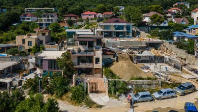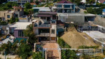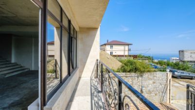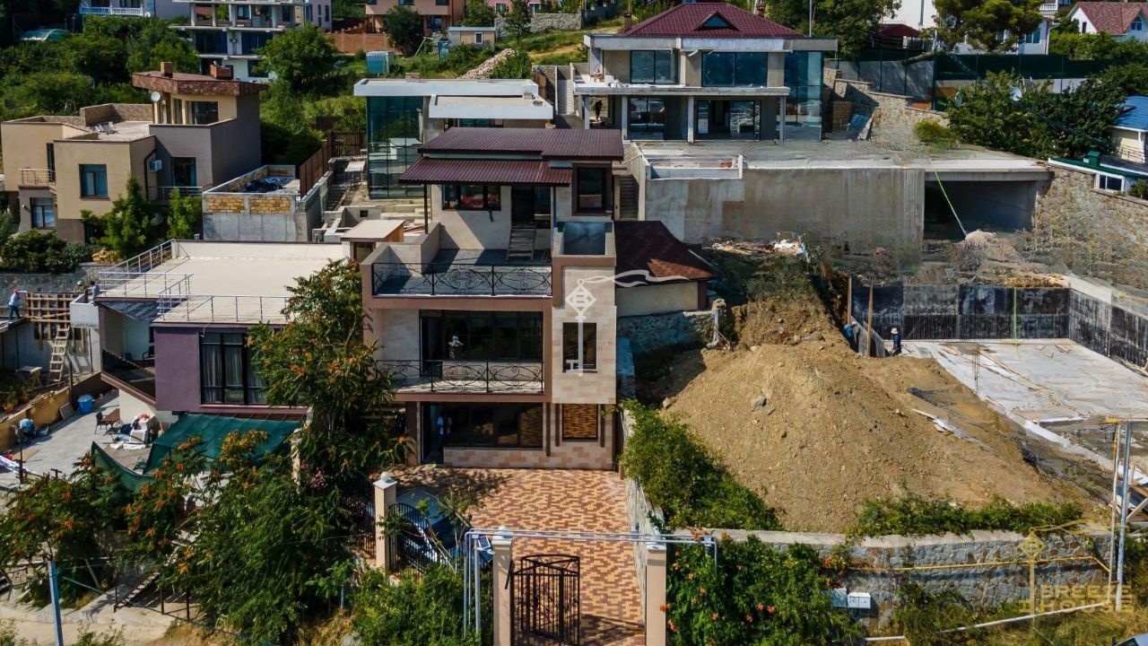Продажа нового трехэтажного дома 223 м² под отделку, на участке 2,1 сотки с живописными видами, расположенного в спальном районе Ялты по соседству с хвойным заповедником.