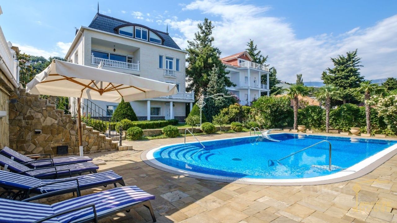 Продажа престижной виллы в Ливадии, состоящей из двух домов, с бассейном, зоной BBQ и сауной, расположенной в десяти минутах от моря в одном из самых живописнейших мест Южного берега Крыма.