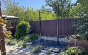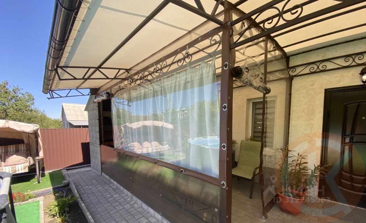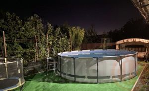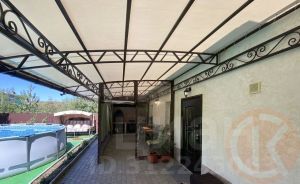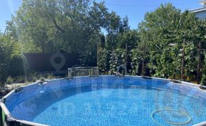 Участок площадью 4 сотки благоустроен: почти вся площадь выложена плиткой и декоративными дорожками, здесь высажены плодовые деревья и кустарники, а также создана уютная зона отдыха с каркасным бассейном, беседкой и мангальной зоной. Для вашего автомобиля предусмотрен большой навес. Также на участке находятся подсобное помещение с дровницей и сливная яма, выполненная из камня.