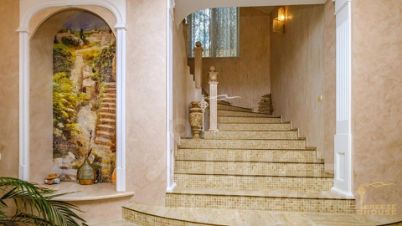 -Лестничная группа и частично мебель изготовлены из натурального мрамора;