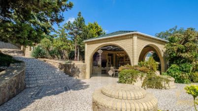 На земельном участке расположен небольшой сад с плодовыми деревьями, высажены экзотические растения и деревья, а также можжевеловые деревья возрастом 200-300 лет. Невероятно красивый ландшафтный дизайн.