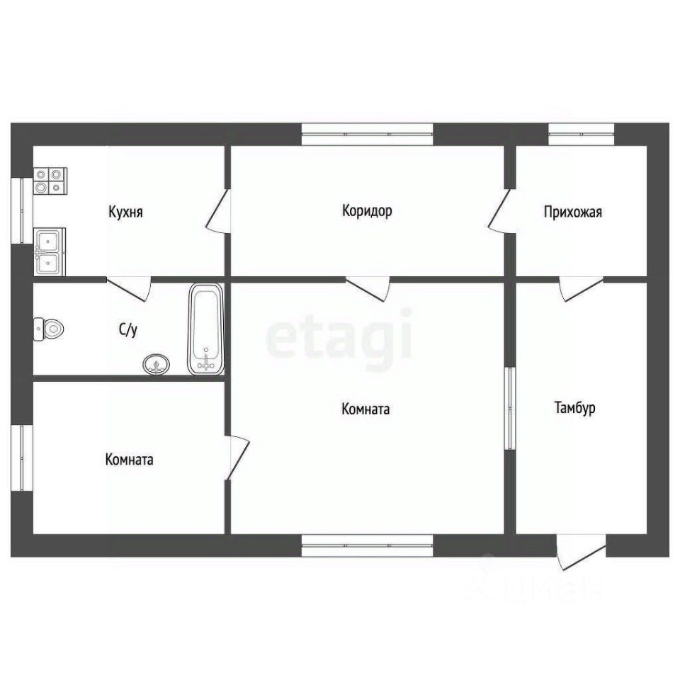 Две спальни, кухня, санузл, прихожу, коридор и тех. помещение. Большая веранда.