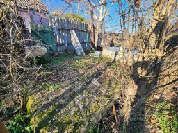 На территории находится старый домик, несколько плодовых деревьев и небольшой склон. Участок огорожен, соседи доброжелательны.