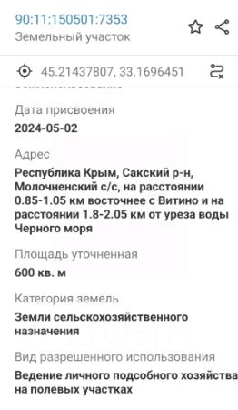 Кадастровый номер: 90:11:150501:7353. Межевание проведено.