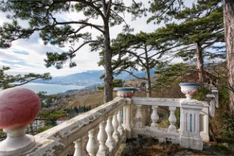 Домовладение расположено в окружении реликтовых сосен с уникальным даже для ЮБК целебным климатом, и самым лучшим видом на море, горы и Ялту.