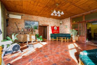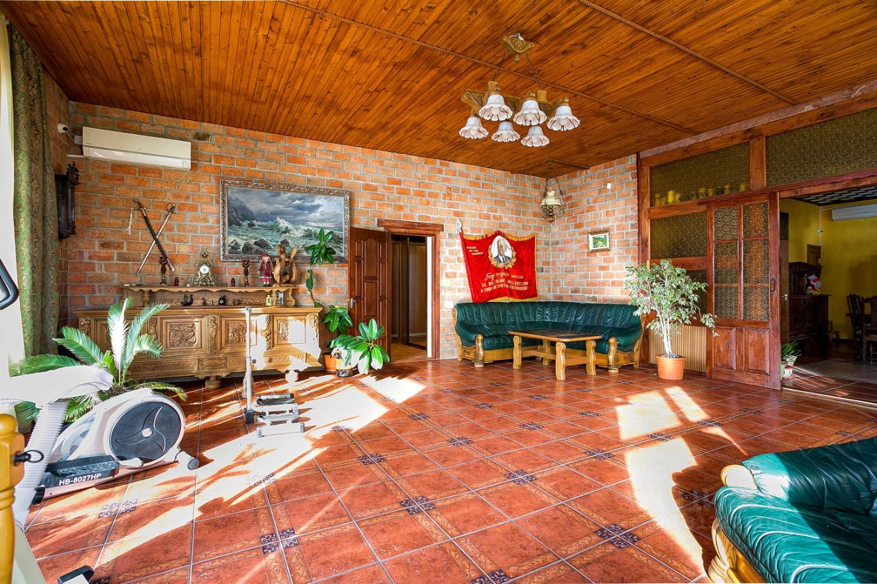 Одноэтажный жилой дом состоит из: кухни с действующим камином, кабинета, спальни, гостиной, двух гостевых комнат, двух санузлов, гардероба, котельной.
