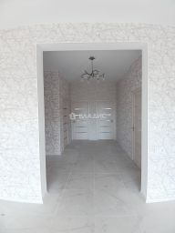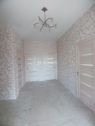 Дом продаётся с внутренней отделкой под ключ: на полу в прихожей, кухне-гостинной и санузле уложен керамогранит и предусмотрен теплый пол; в комнатах-ламинат. Стены оштукатурены и наклеены обои. Потолок натяжной с осветительными приборами. Установлены межкомнатные двери.