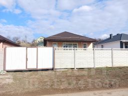 Участок составляет 6 соток, огорожен по периметру евро забором, установлены откатные ворота для въезда авто и калитка.