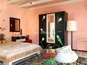 Территория утопает в зелени плодовых деревьев, двор ухожен, вымощен плиткой, кругом клумбы с розами, античные статуи, зона барбекю, большой бассейн с чистой водой, под навесом оборудована зона отдыха и детская площадка.