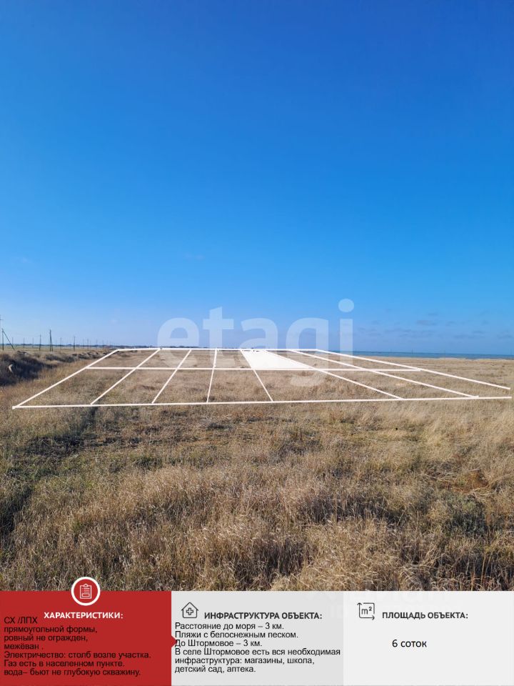 Расстояние до моря 3 км. Пляжи с белоснежным песком. До ближайшего поселка Штормовое 3 км. В селе Штормовое есть вся необходимая инфраструктура: магазины, школа, детский сад, аптека.
