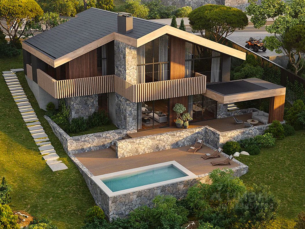 Просторные коттеджи с панорамным остеклением органично вписаны в горную