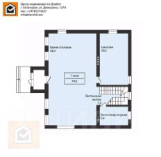 1 этаж: кухня-гостиная 58,2м2; санузел 20,5; бойлерная комната 7,6.