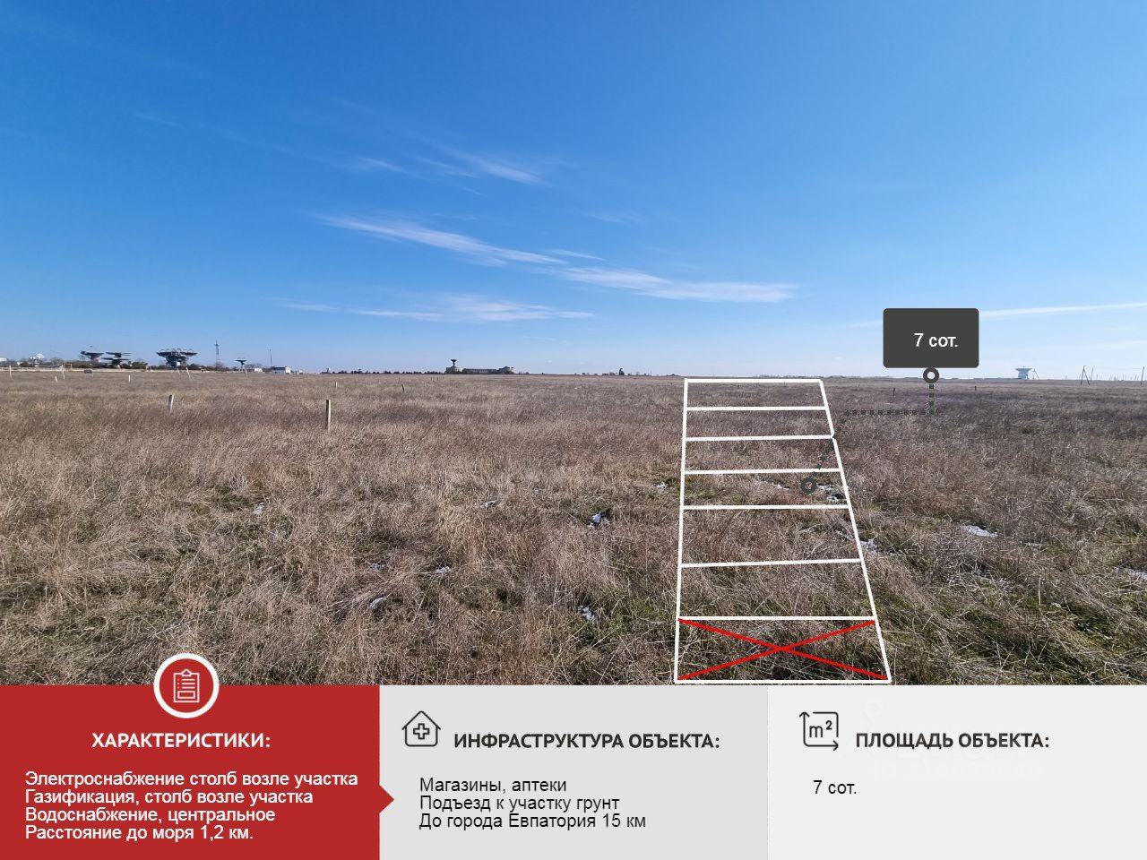 Продаются уникальные участки по 7 соток, ведение дачного хозяйства, в Молочненское сельское поселение, с. Витино, Сакский район, Республика Крым рядом с Евпаторией, ровный, недалеко от моря. Координаты участка: 45.217041, 33.162153