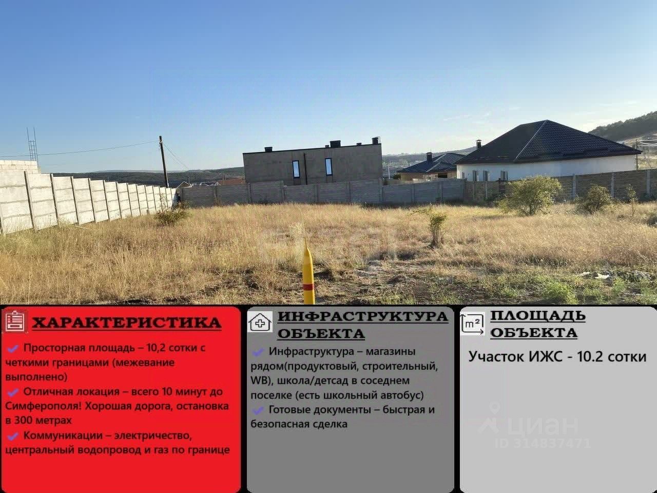 Участок 10,2 сотки в Строгоновке, улица Сарабуз. Свет, газ, вода на границе. 10 минут до центра Симферополя!