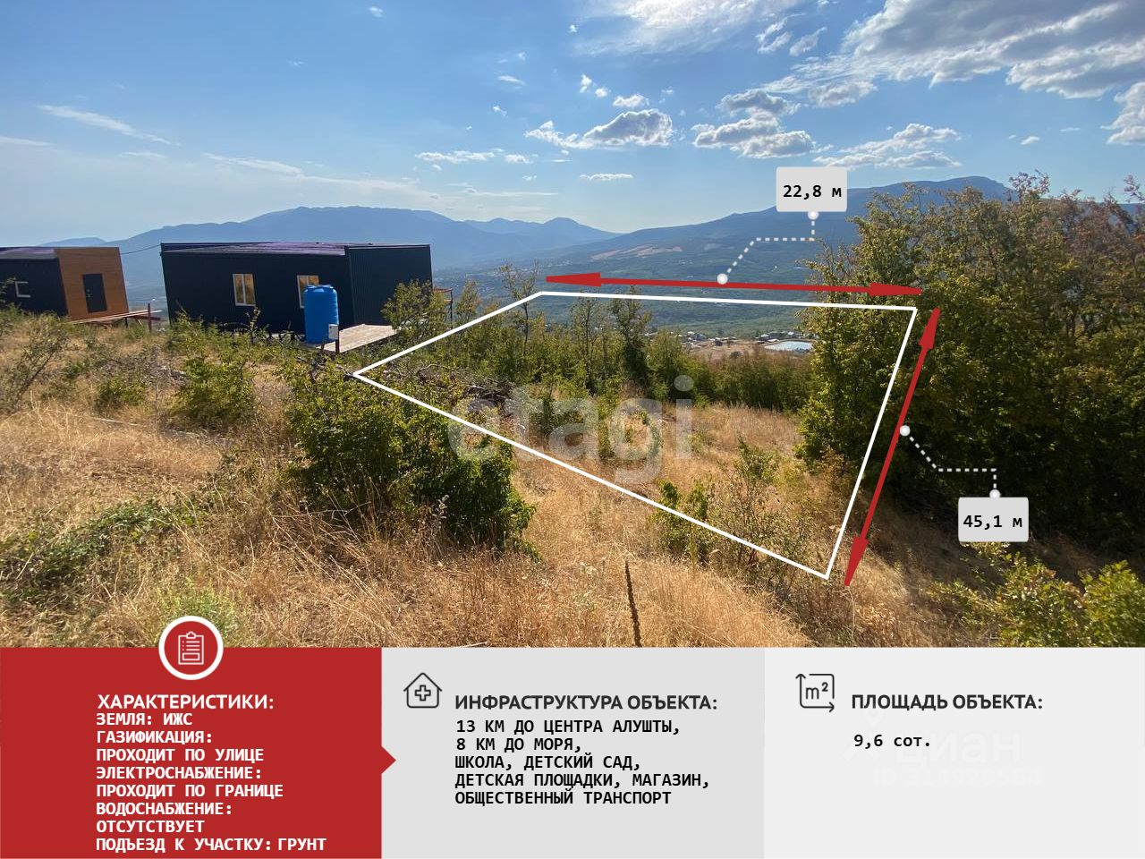Участок расположен в прекрасном месте с шикарным видом на горы Демерджи и Черное море.