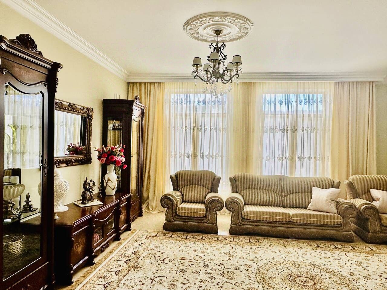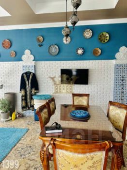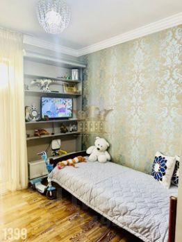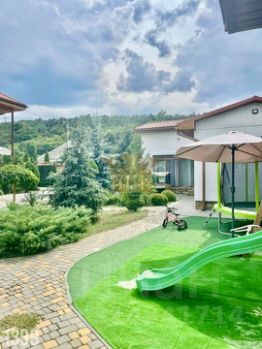 На территории есть мангальная зона, детская площадка, садовые качели, фонтанчик. А так же гостевой дом, 80 кв.м., в этническом стиле с панорамными окнами и дизайнерским ремонтом, состоящий из кухни-гостиной, спальной комнаты и санузла.