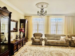 Дом в средиземноморском стиле с дизайнерским ремонтом и ланшафтным дизайном, с хвойными растениями. Дом в двух уровнях, удобной планировки с террасой и большим балконом. Действующий камин. В доме гараж на два автомобиля с раздельными вьездами. Ворота раздвижные, автоматические.