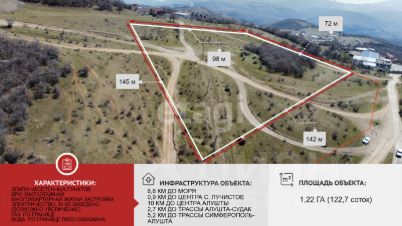 Продаётся земельный участок площадью 122,7 соток в перспективном развивающемся микрорайоне Алушты, в с. Лучистое.