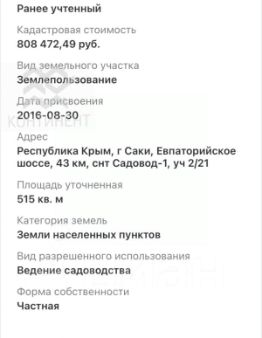Соседние участки уже застроены, въезд с улицы Морская г. Саки напротив Санатория "Голубая Волна"!