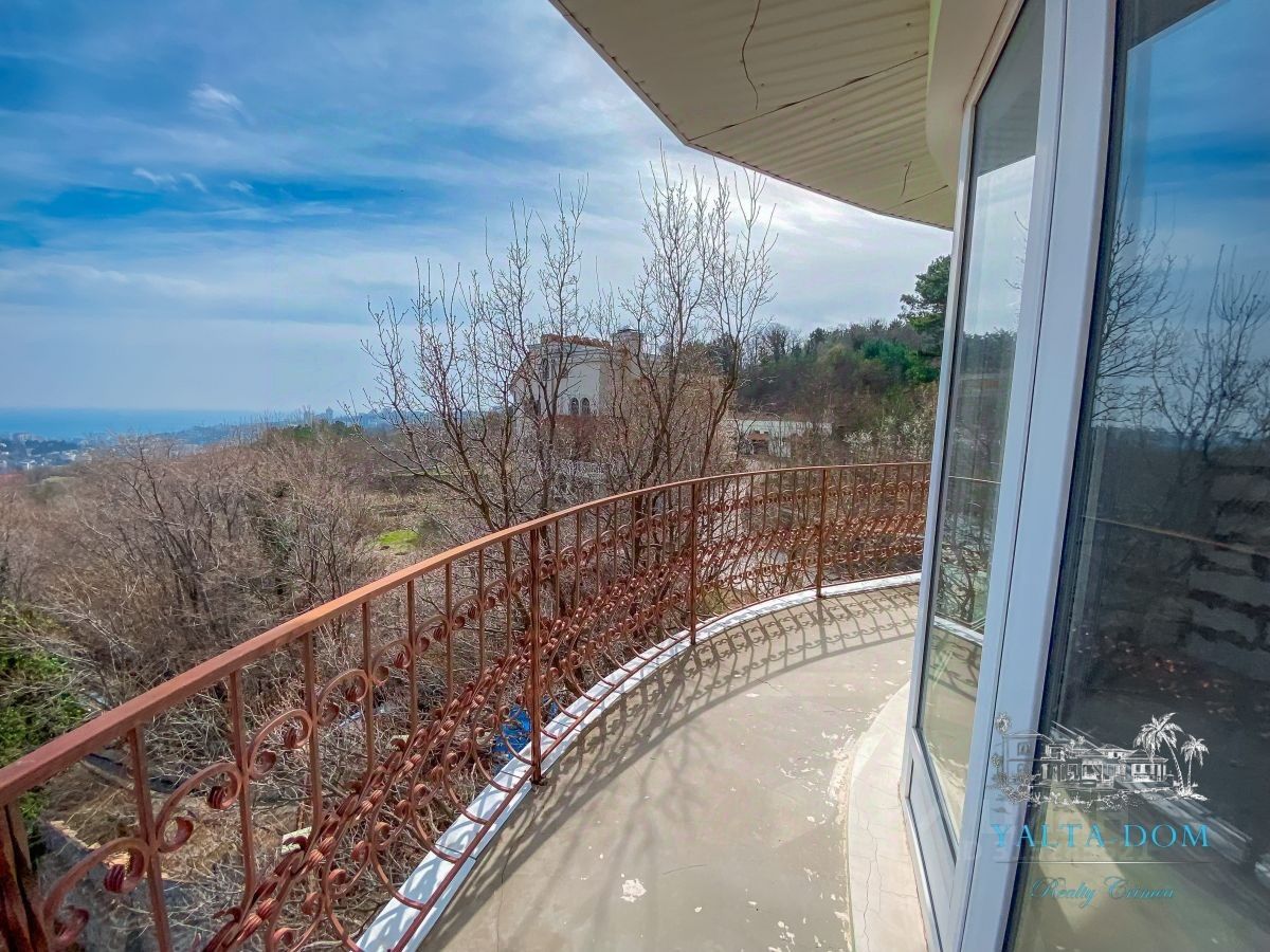 Четвертый этаж: холл с выходом на балкон и видом на горы, два санузла, две спальни, гардеробная. С каждой комнаты выход на балконы с видом на горы и Ялту.