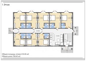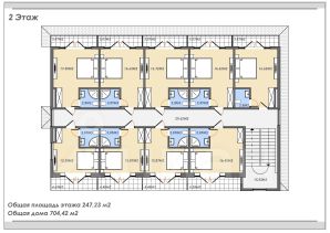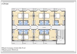 Новый комплекс в 3 этажа общей площадью 704,42 кв.м. + эксплуатируемая кровля 247м/2. По задумке архитектора планировалось разместить до 9ти номеров на этаже, всего номерной фонд составляет 26 апартаментов (номеров). Собственники решили оставить планировку в свободной, без перегородок, для того, чтоб новый собственник смог выполнить индивидуальный проект своей гостиницы. Эксплуатируемой кровли 247 кв.м. достаточно для того, чтоб разместить дополнительно зону отдыха с панорамным видом, кафе или просто небольшой бассейн и зону солярий.