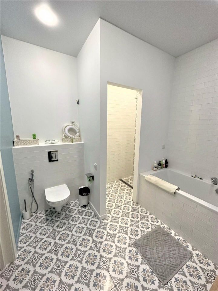 Ванная комната с душевой, ванной, унитазом и раковиной, есть отдельный туалет