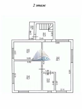 На втором этаже двухкомнатная квартира 50м2 (две комнаты и кухня-гостиная). Лестница по планировке в общем тамбуре.