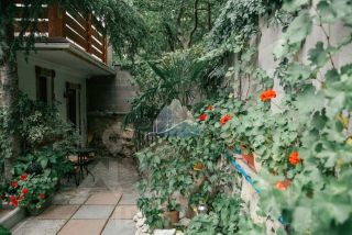 Во дворе дома очень красивая территория: много зелени, разнообразных растений, есть место под автомобиль. Дом находится в пгт. Кацивели.