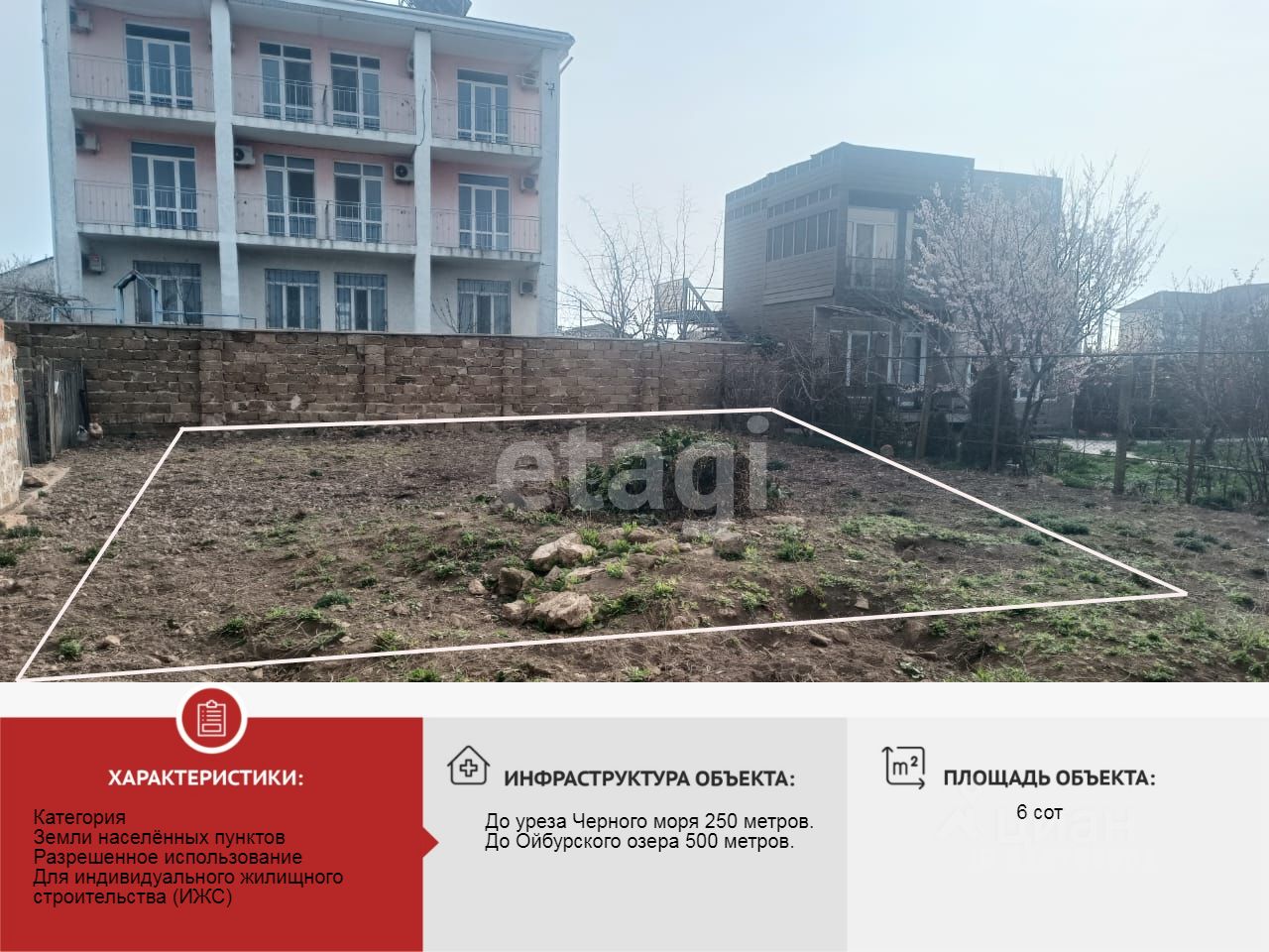 До уреза Черного моря 250 метров. Море в этих местах входит в ТОП мест Крыма с самой чистой и прозрачной водой и белоснежным песком! До Ойбурского озера 500 метров. Озеро Ойбурское - это "МЁРТВОЕ МОРЕ" Крыма с целебными черными и голубыми грязью. Вся необходимая инфраструктура рядом: в шаговой доступности находятся школа, поликлиника, а также рынок и остановки общественного транспорта, что значительно упростит вашу жизнь. Самое выгодное предложение в данном массиве.