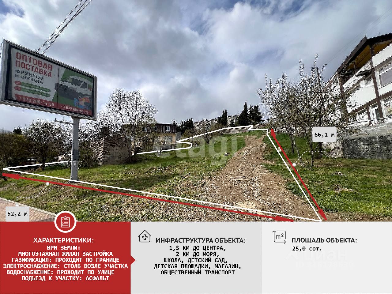 Продается уникальный участок в живописном городе Алушта, который станет идеальным местом для реализации вашего строительного проекта! Площадь в 25 соток предоставляет огромные возможности для многоэтажной жилой застройки, что делает это предложение особенно привлекательным для инвесторов и застройщиков.