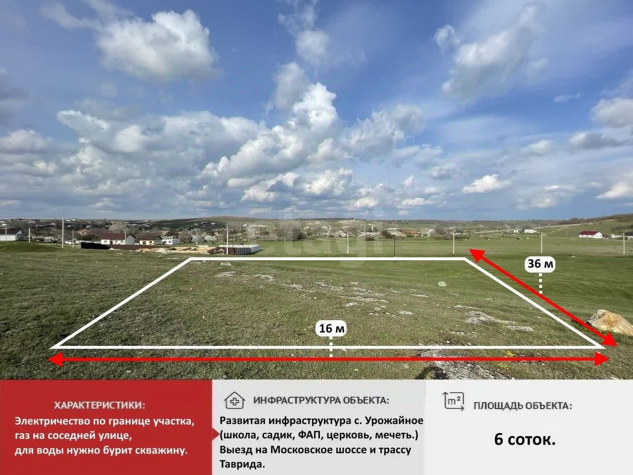 Продается земельный участок, 6.4 соток, ИЖС, в перспективном, развивающемся месте, с. Урожайное!