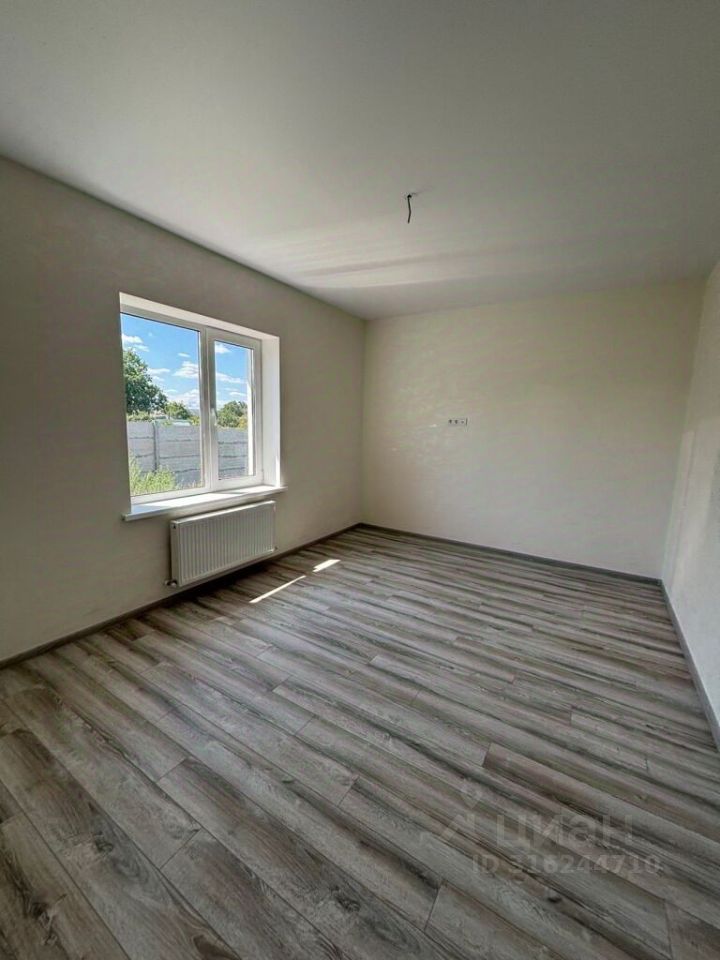 Общая площадь - 100 кв.м. Три изолированные комнаты + большая кухня-гостиная + совмещенный санузел + прихожая. Теплые полы во всех нежилых комнатах, в спальнях установлены радиаторы. В дом заведены и подключены коммуникации (электричество, вода- центральный водопровод, септик- 3 кольца). Установлены электрокотел и электробойлер. 6 соток земли ИЖС. Участок ровный.