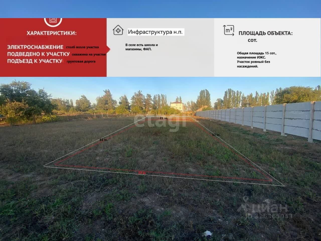 Продам участок, общая площадь 15 сот., назначение ИЖС.