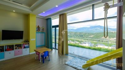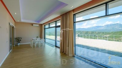 Предлагается к продаже современный коттедж с панорамным остеклением и шикарным видом на место силы - гору Демерджи и Черное море. Коттедж расположен в спальном районе Алушты на участке 5,5 соток. Есть открытый бассейн.