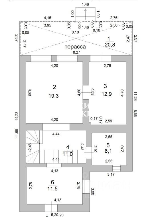 • Площадь первого этажа 81.6 м² + терраса 20.8 м²