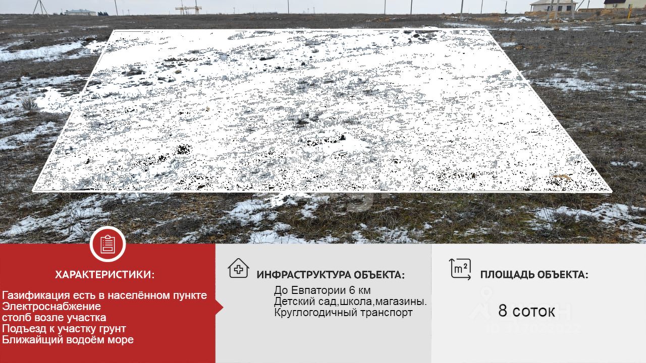 Продаётся участок в селе Каменоломня, площадью восемь соток. Участок правильной прямоугольной формы, не огорожен по периметру.