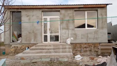 Дом утеплен, нанесена фактурная штукатурка короед, окрашен. Смонтирована водосточная система. Во дворе залито крыльцо.