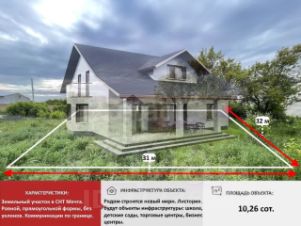 Это идеальное место для строительства вашего дома на площади в 10.26 соток. Есть возможность покупки соседнего участка ещё на 5 соток. Участок правильной формы, плодородный грунт. Все коммуникации по границе!
