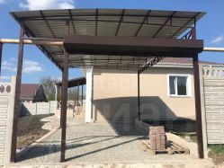 Во дворе тротуарная плитка, участок огорожен забором, ролеты, организовано место для автомобиля, так же навес.