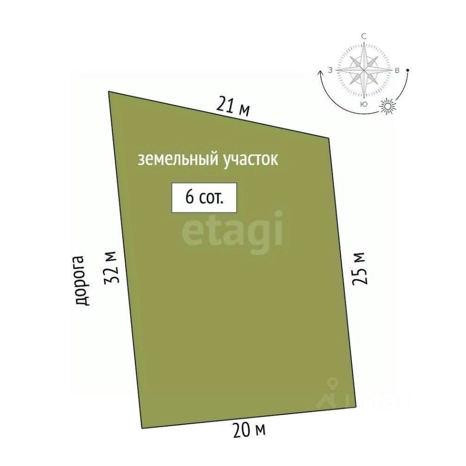 Зeмeльный участок с покатым рельефом, четырехугольной фopмы, площадь - 6 сотoк. ВРИ - ИЖС.