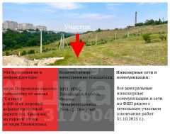 Земельный участок расположен неподалеку от завода "Сизакор", в сравнительной близости от будущей школы, в 400 м от хорошей асфальтированной дороги (ул. Крылова), на первой линии от мкрн Пневматика!