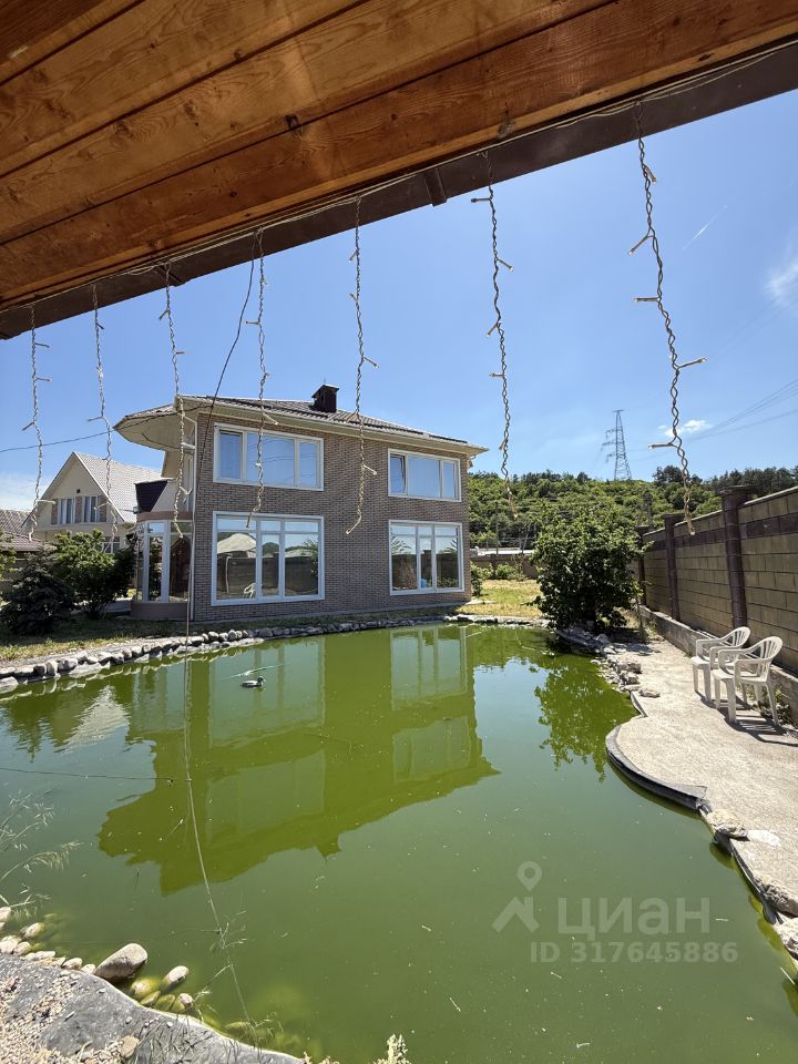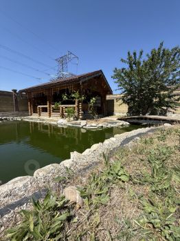 Пруд на 150 куб.м. воды, живут рыбы и раки. Стоит система фильтрации и циркуляции воды.