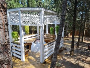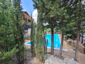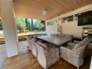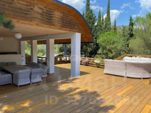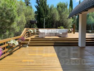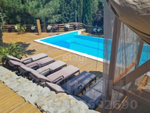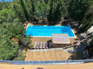 Земельный участок 50 сот., огороженный забором. На участке расположены бассейн 17 м. с газовым подогревом, летняя кухня, летний кинотеатр на террасе, песчаная площадка для пляжного волейбола с сеткой... При продаже вся техника и мебель остается новым собственникам.