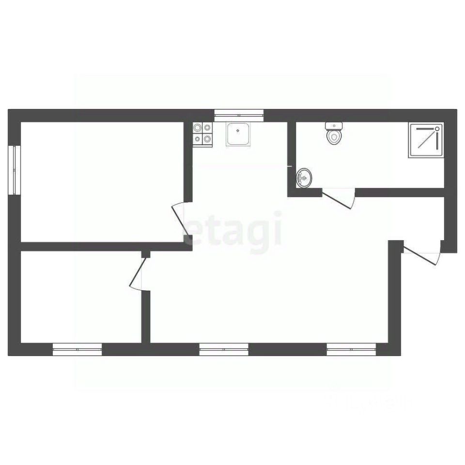 Практичная планировка: спальня, кухня-гостиная, санузел, коридор.