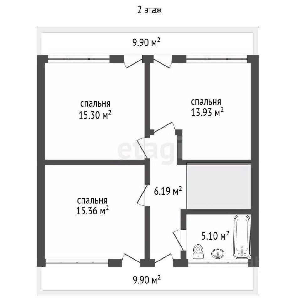 На втором этаже три спальни с панорамным остеклением, каждая с балконом, и туалетная комната. В цокольном этаже удобно разместится сауна.