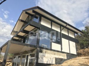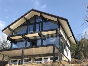 При строительстве дома применялись современная технология "ФАХВЕРК" и дорогостоящие натуральные материалы. Высокопрочные алюминиевые безрамные окна, стеклопакеты с закаленным стеклом и наружным напылением. Кровля выполнена из минеральной (цементно-песчаной) черепицы BRAAS. Фасад дома отделан и покрашен экологичной краской на водной основе.