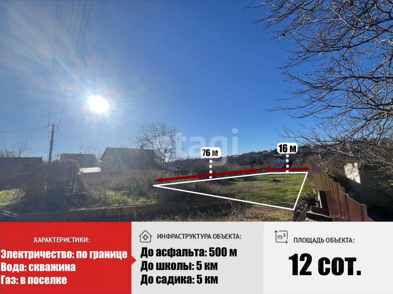 Подготовлен для строительства дома: смотровые и распределительные колодцы воды, 6-ти камерный септик с полем фильтрации, въезд выложен из ракушки, отсыпана грунтовая дорога.